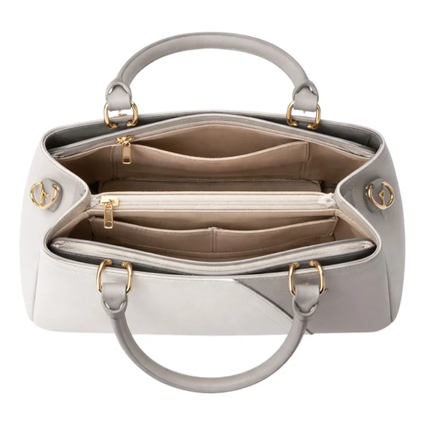 This elegant ivory white and light gray hand bag is designed for women who appreciate modern style and sophistication. Crafted from high-quality leather, it features a beautiful two-tone design that gives the bag a premium and fashionable look. The spacious interior provides enough room for daily essentials such as phone, wallet, cosmetics, and small accessories. Strong top handles ensure comfortable carrying, making it perfect for work, shopping, travel, or everyday use. A stylish handbag that adds elegance and charm to any outfit.